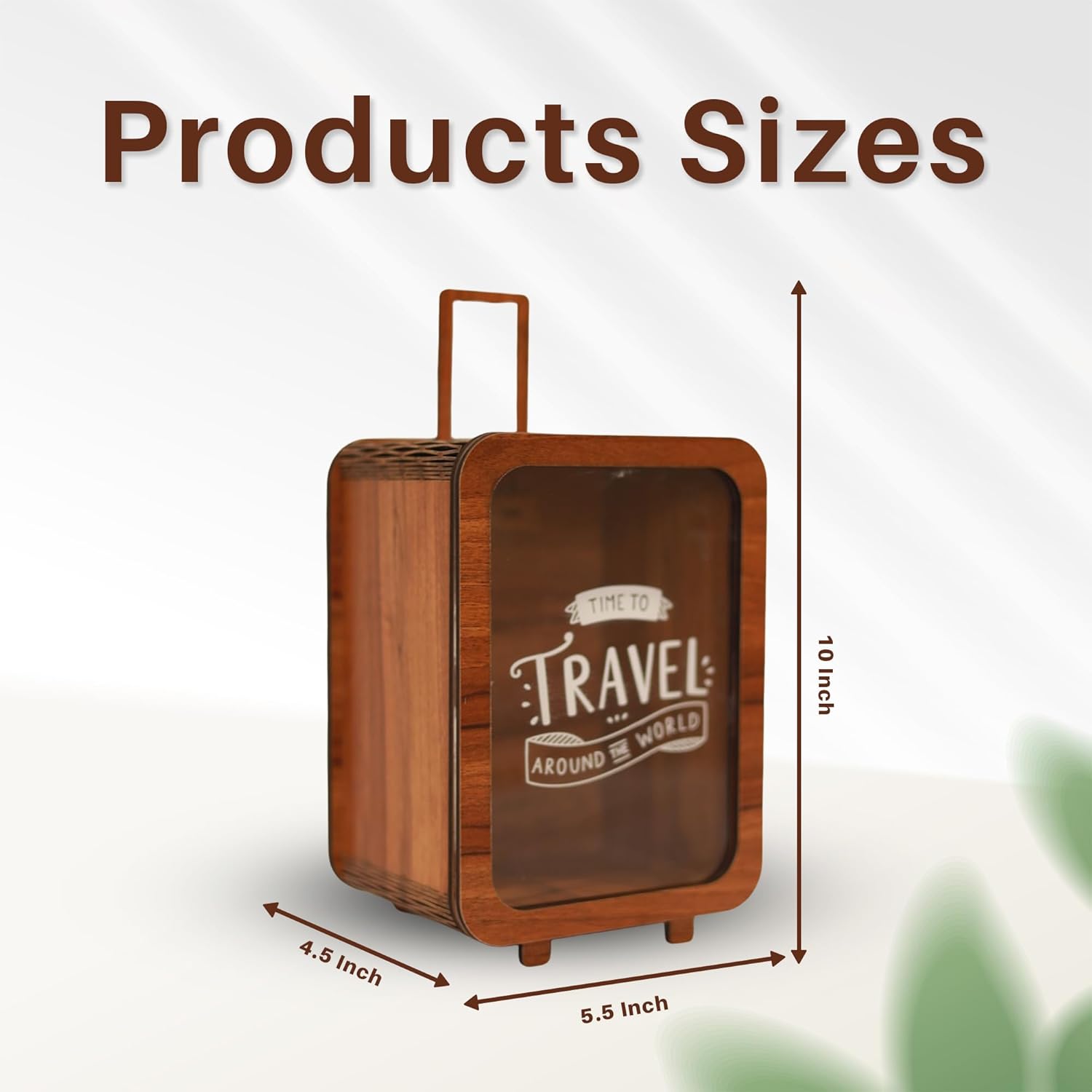 Unique Design: Crafted in the shape of a mini suitcase with a built-in handle. Adds charm to any desk or shelf.